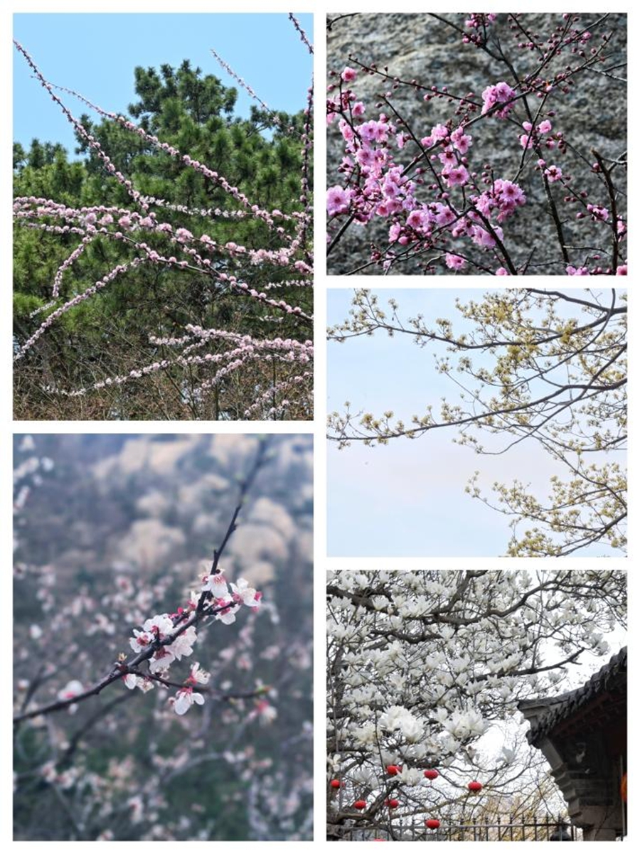 越过山门,迈过一个个台阶,早起的困倦随着春风与阳光消散,樱花、山茶、杜鹃、不知名花种等竞相绽放,掩映在蓝天之下,山林之间,展示着春天的勃勃生机,大自然的生命力跃然眼前。